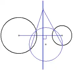Voor het geval de cirkels niet snijden, kan men gebruikmaken van het machtpunt van drie cirkels: