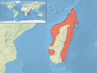 | Verspreidingsgebied van de madagaskarkoekoekswouw. | |||||||||||||