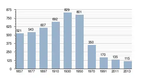 - Bron: INE, 1857-2011: volkstellingen