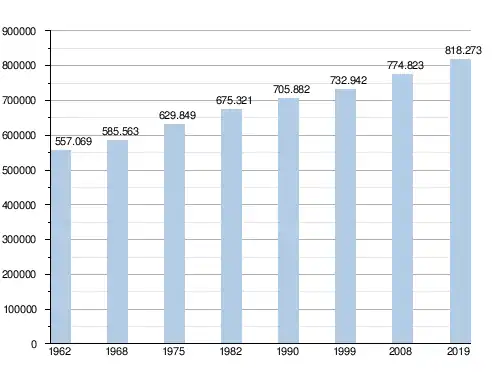 Bron: Recensement Populaire INSEE - 1962 tot 1999 population sans doubles comptes, nadien Population Municipale