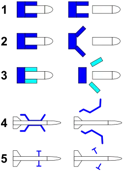 - 2. Omsluit de basis van het projectiel geheel en wordt opengebroken door de rotatie.