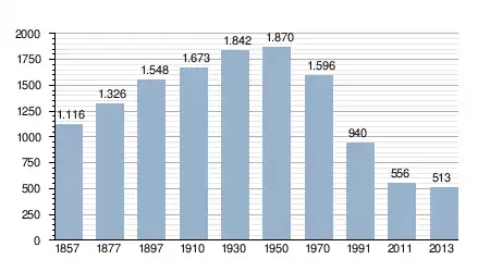 - Bron: INE, 1857-2011: volkstellingen