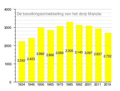 Op 31 december 2019 woonden er 2.702 personen in het dorp Manole.
