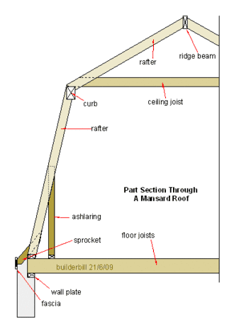 ridge beam = nokbalk, rafter = dakspant, ceiling joist = dwarsbalk, curb = langsdrager, ashlaring = staander