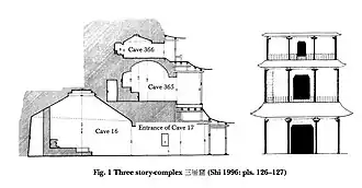 Daarnaast was de functie van de grot verbonden aan dat van het belangrijkste klooster in de omgeving, Sanjie. Uit een groot aantal documenten blijkt, dat een Chinese monnik in de 10e eeuw, Daozhen, de manuscripten in de opslagplaats gebruikte om niet volledige manuscripten van de bibliotheek van het klooster aan te vullen. Meervoudig aanwezige documenten in het klooster borg hij op in de grot. Waarschijnlijk bracht de monnik aan het eind van zijn leven vrijwel de complete bibliotheek van het klooster in de grot onder. Dat moet dan eind 10e eeuw zijn geweest.