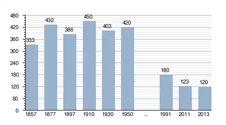 - Bron: INE, 1857-2011: volkstellingen