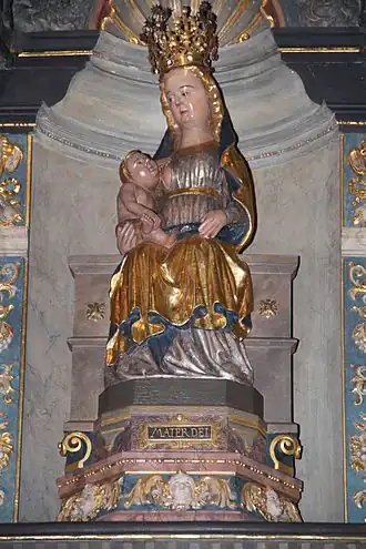 - Een houten genadebeeld van rond het jaar 1400. Het werd opnieuw gedecoreerd en beschilderd.