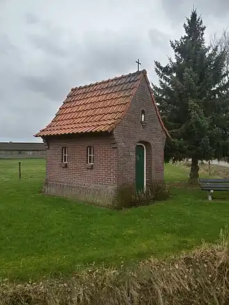De bakstenen kapel is opgetrokken op een rechthoekig plattegrond en wordt gedekt door een met rode pannen gedekt zadeldak met een hol-gebogen dakvoet. Het basement van de kapel loopt schuin uit en is uitgevoerd in donkere stenen. In beide zijgevels zijn twee segmentboogvensters aangebracht. De frontgevel en achtergevel zijn een puntgevel met een verbrede aanzet. Op de top van de frontgevel staat een metalen kruis en hoog in de frontgevel is een rondboognis aangebracht met daarin een heiligenbeeldje. In de frontgevel bevindt zich de korfboogvormige toegang die wordt afgesloten met een deur met daarin een vierpasvenster.