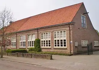 De rooms-katholieke school voor gewoon lager onderwijs werd ontworpen door architect Van Vliet. In 1921 werden vijf lokalen en een gymzaal gebouwd. Het gymnastieklokaal bevindt zich aan het eind van de linkervleugel. In 1937 werden twee lokalen aangebouwd aan de rechtervleugel. De lokalen van de school hebben laddervensters.