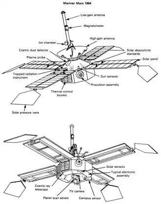 - Tv-camera, om beelden van de rode planeet door te zenden. Deze maakte beelden van matige kwaliteit met een oplossend vermogen van 200 beeldlijnen met ieder 200 beeldpunten. Informatie over iedere pixel werd via 6 bits opgeslagen op band, dus een opname van Mars besloeg 240.000 bits in zwart-wit met 64 grijstinten.