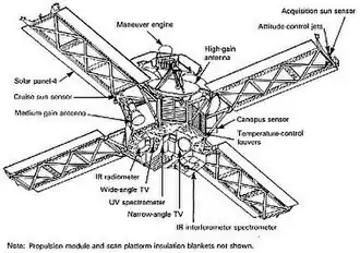 - IRIS (Infrared Interferometer Spectrometer), die gegevens verzamelde over de verticale opbouw en samenstelling van de atmosfeer en de emissiviteit van de bodem, op golflengtes van 6 tot 50 µm.