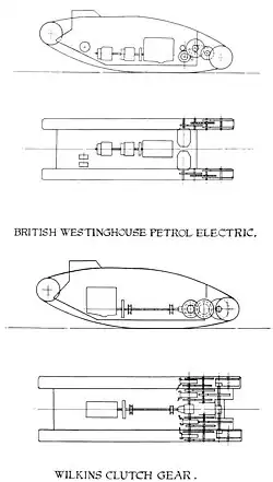 Een van deze werd naar Frankrijk verzonden om daar te worden uitgerust met het petro-elektrische systeem van de St Chamond. De directeur van het Tank Supply Department, Albert Stern, was namelijk tijdens een oriënterend bezoek aan Frankrijk, rondgeleid bij Saint Chamond door Émile François Léon Rimailho, gecharmeerd geraakt van de schijnbare eenvoud en het rijgemak van zo'n systeem. In Engeland bouwde de firma Westinghouse een gelijkend systeem in, Daimler deed hetzelfde in de romp van Mother, terwijl Williams-Janney een hydraulisch type uitprobeerde. Al deze experimenten hadden mede tot doel de snelheid van de tank, tot dan toe die van een slak op een teerbaan, te verdubbelen door een verbeterd koppel. Al deze projecten bleken echter te onbetrouwbaar - tot grote ergernis van Stern die al 600 transmissies bij Daimler besteld had - en dat gold ook voor een ingewikkeld dubbel versnellingssysteem van een zekere Wilkins. De winnaar was bij een grote wedstrijddag op 3 maart 1917 te Oldbury in het bijzijn van tientallen prominente genodigden de vijfde tank met een epicyclische versnellingsbak, ontwikkeld door de oorspronkelijke ontwerper van de Mark I, Walter Wilson - een type dat voortaan bij de ruime meerderheid van alle tankontwerpen toegepast zou worden. Aan deze dag deden ook het prototype van de Whippet en de Gun Carrier Mark I mee. De fraaie brochures die bij deze gelegenheid aan de gasten werden uitgedeeld, vormen de belangrijkste informatiebron die we nog over al deze projecten hebben. Deze gelegenheid werd gebruikt om de dag erop een geheime bespreking te houden tussen Stern en de Franse generaal Jean-Baptiste Eugène Estienne waarbij besloten werd dat de Britten zich zouden richten op de productie van zware tanks en de Fransen de lichte tanks zouden leveren, in casu de FT-17.