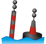 De betonning of baken is zwart met één of meer brede rode horizontale band(en) met de vorm, bij voorkeur, pilaar of spar, en met als topteken 2 boven elkaar geplaatste zwarte bollen. 's Nachts zijn ze te herkennen aan de twee witte schitteringen per 5 of 10 seconden. De lichtkarakteristiek is dan Fl(2)W5s of Fl(2)W10s. In Nederland is het geregeld in het Scheepvaartreglement territoriale zee.[2]