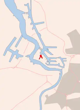 Vanaf de zuidoostelijke hoek voorbij de Petroleumbrug-wipbrug met zijn doorgangbreedte van 35 meter en zijn VHF-oproepkanaal 26 (alle andere bruggen in de haven hebben VHF-kanaal 62), begint de licht gekromde kade, met de nummeringen ES1 tot ES16 waar de Esso-vestiging is.