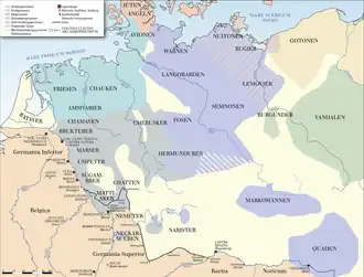 Tacitus noemt de Marsi herhaaldelijk met name in het kader van de oorlogen van Germanicus. De Marsi hadden deel uitgemaakt van de tribale coalitie onder leiding van de Cheruskische oorlogsleider Arminius, die in de Slag bij het Teutoburger Woud in het jaar 9 n.Chr. drie Romeinse legioenen onder leiding van Varus had vernietigd. Germanicus, die op wraak voor deze nederlaag uit was, trok het stamgebied van de Marsi in 14 n.Chr. binnen in gezelschap van 12.000 legionairs, 26 cohorten hulptroepen en 8 cavalerie-eenheden. Door de viering van het feest van hun godin Tanfana was een deel van de Marsi te dronken geworden om effectief op deze verrassingsaanval te reageren. Zij werden afgeslacht. Volgens Tacitus (Annales 1, 51) werd een oppervlakte ter grootte van 50 Romeinse mijlen door middel van het vuur en het zwaard van alle menselijke aanwezigheid ontdaan. "Man noch vrouw, oud noch jong, niemand vond medelijden". Tijdens deze actie werd een van de legioensadelaars, die bij de nederlaag van Varus verloren waren gegaan, teruggevonden. Het betrof hier de adelaar van ofwel het XVII (17e) of het XVIII (18e) legioen.