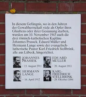 De Martelaren van Lübeck waren drie rooms-katholieke priesters – Johannes Prassek, Eduard Müller en Hermann Lange – en de Evangelisch-Lutherse predikant Karl Friedrich Stellbrink. Zij werden alle vier op 10 november 1943 onthoofd. Tussen hun executies zat minder dan drie minuten. Ooggetuigen vermelden dat het bloed van de vier geestelijken samenstroomde over de guillotine en de vloer.