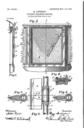 - ↑ a b c (en) Bellis, Mary, Biography of Mary Anderson, Inventor of the Windshield Wiper. ThoughtCo (28 juli 2019). Gearchiveerd op 30 augustus 2021. Geraadpleegd op 17 september 2024.