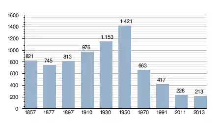 - Bron: INE, 1857-2011: volkstellingen