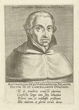 Galenus was een welgeleerd man, bekend met het Latijn, het Grieks en het Hebreeuws. In 1563 werd hij benoemd tot proost van St. Peter en in 1571 van St. Amatus. Ook werd hij kanselier van de academie in Douai. Hij is aanwezig geweest op zowel het Concilie van Trente (1545-1563) als de Synode van Kameryk. Hij heeft vele werken uitgebracht in het Latijn over praktische en polemische theologie.