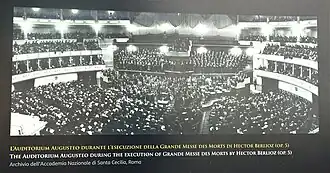 - Vanaf 1908 tot 1936 was het een bekende concertzaal met de naam Auditorium Augusteo, een ronde zaal met een capaciteit van 3.500 man. Deze was de thuisbasis van de befaamde Accademia Nazionale di Santa Cecilia.