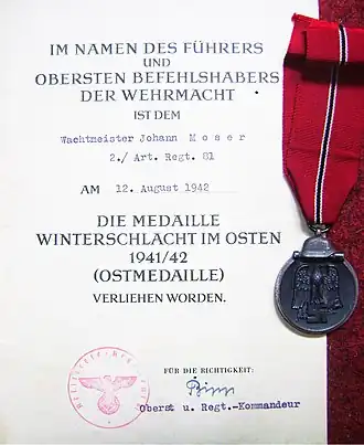 - Medaille "Winterschlacht im Osten 1941/42" (Ostmedaille). tracesofwar.nl. Gearchiveerd op 6 augustus 2020. Geraadpleegd op 27 april 2020.