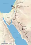 De spoorlijn bereikte Damascus en Amman. Groot-Brittannië verhinderde in 1906 de aanleg van een zijlijn naar de havenstad Akaba. De aanleg was in het stammengebied van Arabië aangeland, waar de bouw aan 7000 soldaten moest worden toevertrouwd. De Hidjazspoorweg was in 1908 tot Medina gevorderd.