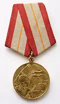 1945 | Deze medaille die de beeltenis van Generalissimo Stalin, de Sovjet-leider draagt herdenkt de overwinning op Duitsland in de "Grote Patriottische Oorlog" van 1941-1945. Het lint is gelijk aan dat van de "Orde van de Glorie". |