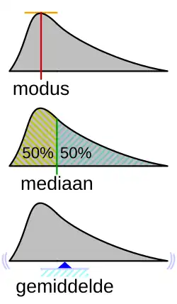 Voor een symmetrische verdeling waarvoor het populatiegemiddelde bestaat, zoals de normale verdeling, is de populatiemediaan gelijk aan .