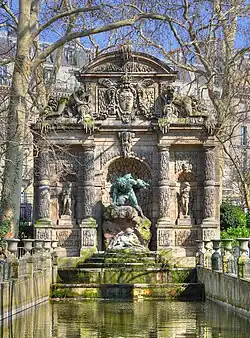 Na de moord op koning Hendrik IV liet de koningin-weduwe en regentes Maria de' Medici vanaf 1611 een persoonlijke residentie optrekken die later bekend kwam te staan als het Palais du Luxembourg. Haar inspiratie was het Palazzo Pitti uit haar geboortestad Florence en voor de tuinen richtte ze zich op de Giardino di Boboli, die ze kende uit haar jeugd. Ze wilde er grotto's en nymphaea, zoals de maniëristische Grotta del Buontalenti. Dit waren typische elementen voor een Italiaanse renaissancetuin. Naar alle waarschijnlijkheid deed ze voor de grotto geen beroep op de architect Jacques Lemercier, maar op de ingenieur Tommaso Francini (1571-1651). Hij had in 1623 het Aqueduc Médicis voltooid, dat voldoende water moest brengen naar de linkeroever van de Seine.