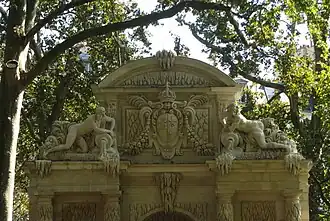 De 14 m hoge en 12 m brede renaissancestructuur is vrij intact bewaard, op drie ornamentele vuurpotten na. Hij bestaat uit vier Toscaanse zuilen met daartussen drie nissen. Het gebogen fronton, met het wapen van Maria de' Medici, wordt geflankeerd door twee riviergoden. Deze allegorieën van de Seine en de Rhône zijn kopieën naar de oorspronkelijke beelden van Pierre Biard. Zuilen, nissen en muurvlakken zijn rustiek afgewerkt als met afzettingen van druipend water (congélations, pleurs d'eau).