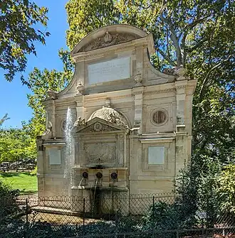 Het water van de fontein stroomt langs een getrapte waterval in een rechthoekig bassin van 50 m lang. Het is aangelegd door Gisors. Hij omgaf het met vazen en ijzeren hekwerk, met daarachter platanen.