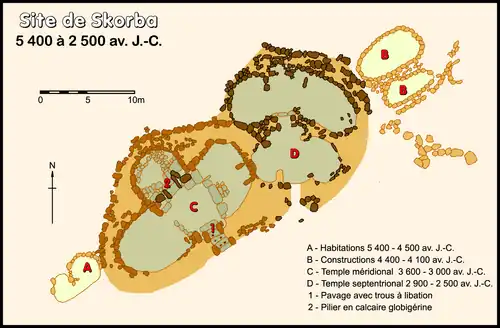 Het Żebbiegħ gebied rond Skorba blijkt al heel vroeg in het Neolithicum te zijn bewoond geweest. Toen de eminente Maltese historicus Temi Żammit de nabij gelegen tempels van Ta' Ħaġrat opgroef, stak op de site van Skorba slechts één enkele platte rechtop opstaande steen uit een kleine afvalberg. Archeologen schonken aan deze berg geen aandacht totdat David H. Trump hem tussen 1960 en 1963 ging uitgraven.[3]