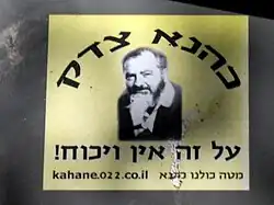 Sticker van aanhangers van Kahane: "Kahane had gelijk, er kan hier geen discussie mogelijk over zijn!"partijen die aanzetten tot racisme.