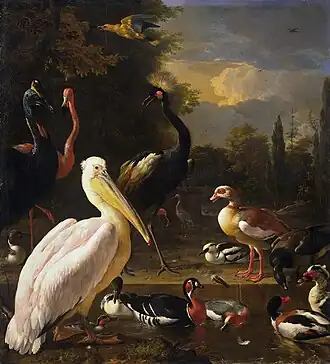 | Een pelikaan en ander gevogelte bij een waterbassin (bekend als ‘Het drijvend veertje’) | 1680 | Rijksmuseum Amsterdam, Amsterdam | ![]() |
