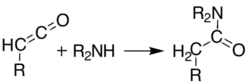 De ontstane ketenen kunnen met behulp van flash vacuum pyrolyse (FVP) geïsoleerd worden. Ketenen zijn zeer nucleofiele deeltjes die makkelijk dimeriseren tot diketenen en additiereacties ondergaan met een groot aantal verschillende reagentia waarbij nieuwe C-C-bindingen worden gevormd, ringen ontstaan of amides (links), esters (midden) en zuren (rechts):
