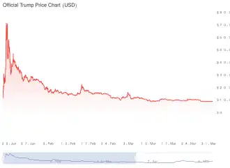 $TRUMP – Donald Trump lanceerde deze memecoin op 17 januari 2025, drie dagen voor zijn inauguratie. Binnen 48 uur was de prijs van zijn memecoin gestegen van US$ 20 naar US$ 70.[8] In maart 2025 werd bekend dat Trump hier US$ 350 miljoen aan heeft verdiend.[9] Op 26 januari daalde de prijs al onder de US$ 30 en schommelde in juni 2025 rond de US$ 9,50.
