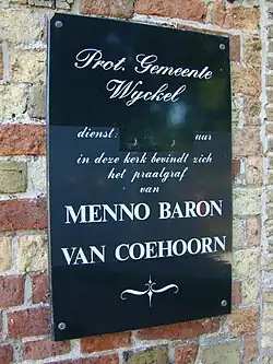 Van Coehoorn stierf in 1704 aan een beroerte en werd begraven in de Vaste Burchtkerk te Wijckel. Hier wordt de plek van zijn graf nog altijd aangegeven door een groot monument, ontworpen door Daniel Marot en uitgevoerd door Pieter van der Plas.