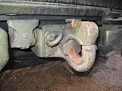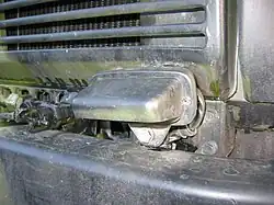 In de voorbumper zijn houders aangebracht voor de gekleurde vlaggen van de colonnesignaleringsuitrusting.
