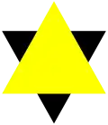 De gele driehoek die met de punt naar boven wijst, was altijd aanwezig bij een jood. Als de jood naar nazinormen nog meer op zijn kerfstok had, werd de omgekeerde driehoek ingekleurd. Was de jood bijvoorbeeld ook nog een crimineel, dan kreeg hij een omgekeerde groene driehoek over zijn gele driehoek. Joodse homoseksuelen kregen een combinatie van geel met roze en joodse lesbische vrouwen kregen geel met zwart. Paste een joodse gevangene niet in de voorvermelde categorieën, dan was de ster volledig geel.