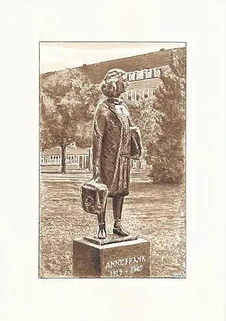 - het Beeld van Anne Frank gemaakt door beeldend kunstenaar Jet Schepp, dat eveneens in de as op het plein staat