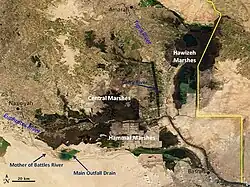 - ↑ (en) Mesopotamian Marshes, Earth Observatory, 5 maart 2001, geraadpleegd op 25 mei 2025
