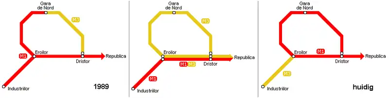 Sinds 4 juli 2009 heeft metrolijn 3 terug een volledig traject, en is naast de westelijke tak van Preciziei tot Eroilor ook een gemeenschappelijk traject met lijn 1 tussen Eroilor en Nicolae Grigorescu en een op 20 november 2008 geopende oostelijke tak tussen Nicolae Grigorescu en Anghel Saligny onderdeel van het traject.