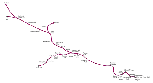 - Amersham - Baker Street (2x per uur - aangevuld met twee Chiltern Railways treinen per uur tussen London-Marylebone en Aylesbury)