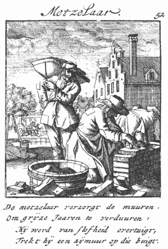 - Een sabel, een stalen strip, die zo gevormd en geslepen is, dat de metselaar heel precies stenen kan behakken en bewerken.