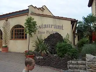 In het gedeelte dat is gethematiseerd naar een Mexicaans dorpje bevinden zich verschillende eetgelegenheden, die typisch Mexicaanse snacks verkopen, zoals churros. Er is één restaurant te vinden met tafelbediening, het La Hacienda-restaurant. Tevens is er een theater met een ijsbaan, de Arena de Fiesta, waar op dit moment de show Relight my Fire wordt opgevoerd. Ook is er de show Casa Magnetica te vinden, een huis waarin wordt gespeeld met de zwaartekracht.