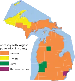 Sommige county's in Michigan worden bevolkt door grote groepen Nederlandse immigranten, vooral boeren, die in sommige county's zelfs een meerderheid in de etnische minderheid vormen. Veel Dutch-Americans wonen in Grand Rapids en Holland.