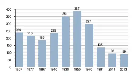 - Bron: INE, 1857-2011: volkstellingen