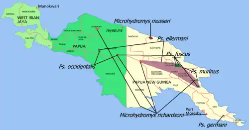 - Microhydromys richardsoni (verspreid over de bergen van Nieuw-Guinea)
