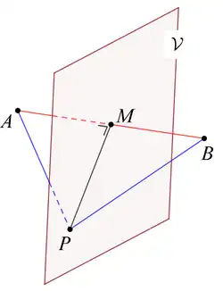 In het vlak dat bepaald wordt door het lijnstuk en een punt van het middelloodvlak van dat lijnstuk, is de lijn – waarbij het midden is van – de middelloodlijn van .