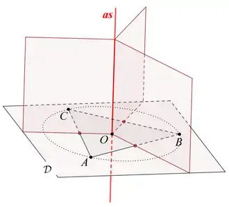 De as van een driehoek in de ruimtemeetkunde is de lijn door het middelpunt van de omgeschreven cirkel van die driehoek die loodrecht staat op het vlak waarin de driehoek gelegen is.[2] De as is de gemeenschappelijke snijlijn van de drie middelloodvlakken van de zijden van de driehoek.